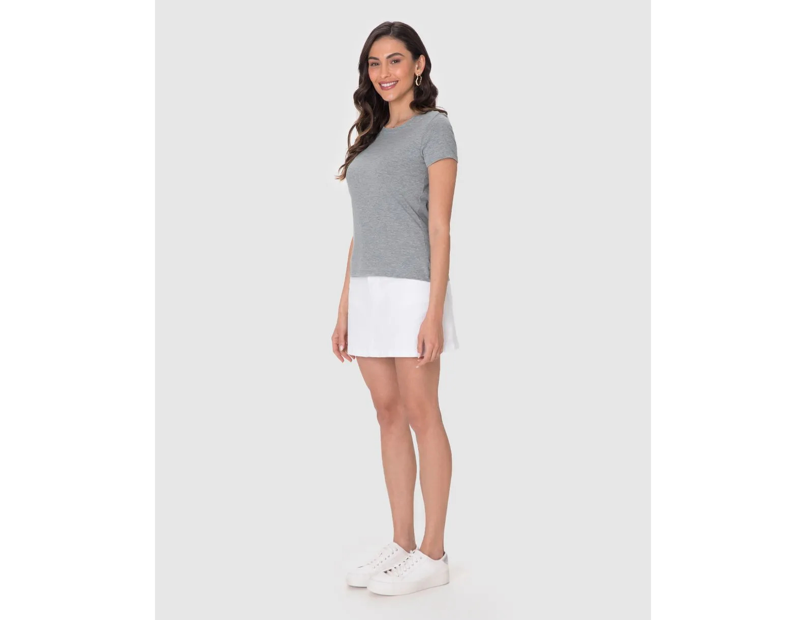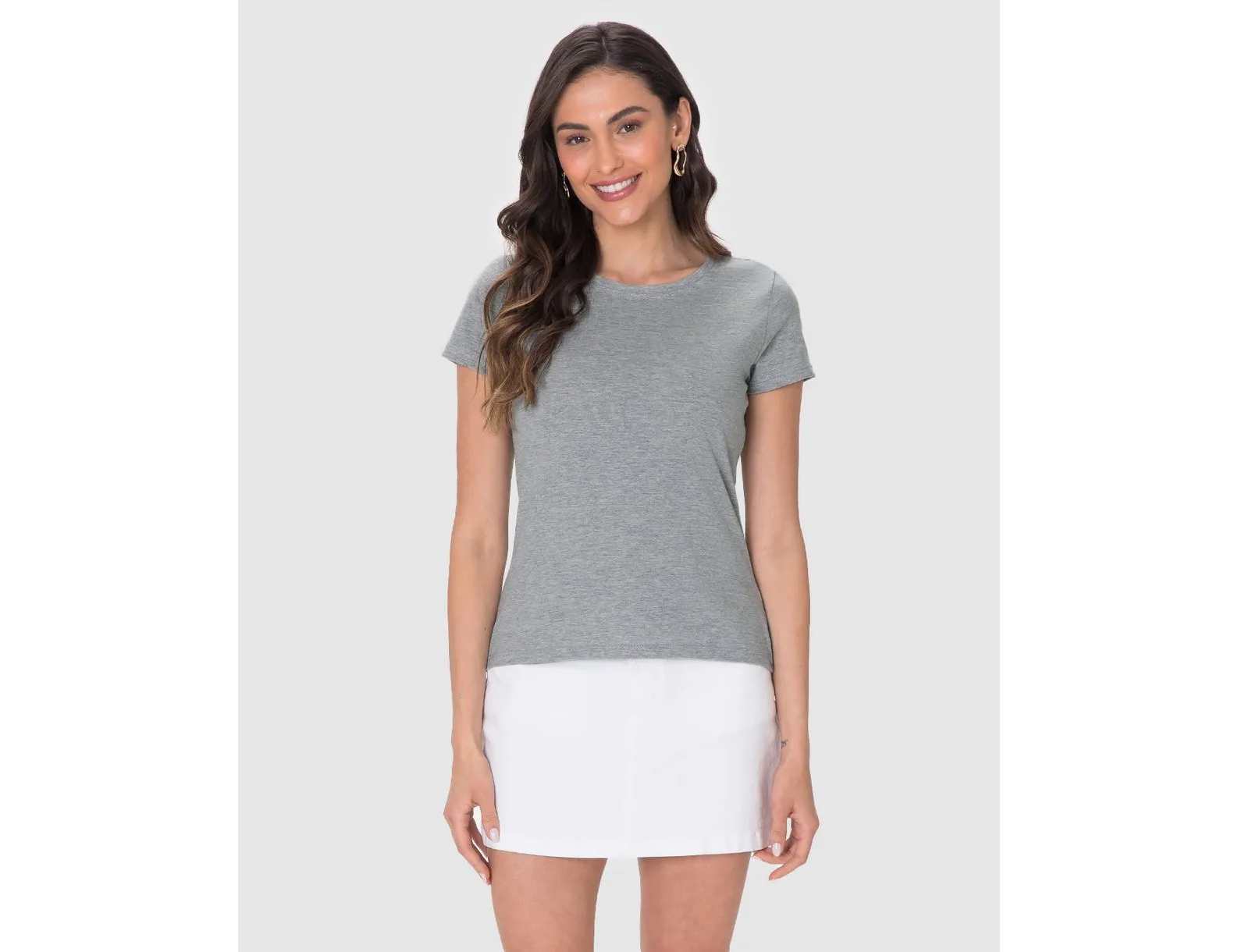 Blusa Básica Malwee Feminina com modelagem Baby Look, essencial para um caimento levemente ajustado e confortável. Confeccionada em Malha Mescla com Algodão, é perfeita para o dia a dia e ideal para o mix de moda básica da sua loja. Produto original Malwee para revenda.