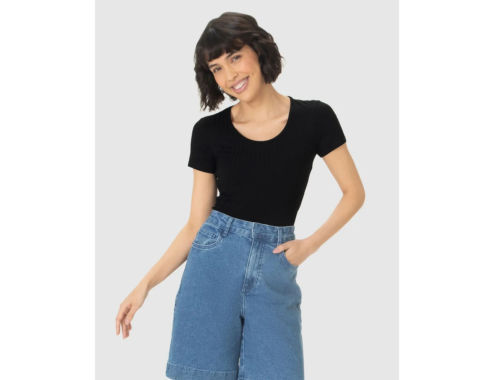 Blusa Basica Malwee Feminina Manga Curta Canelado 1000050615 - Atacado