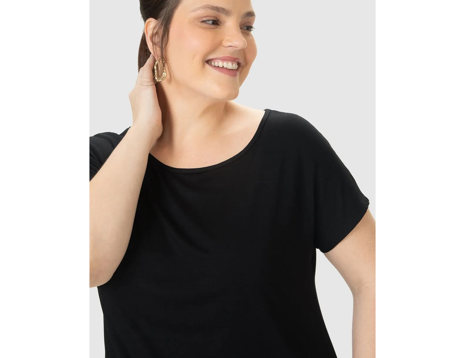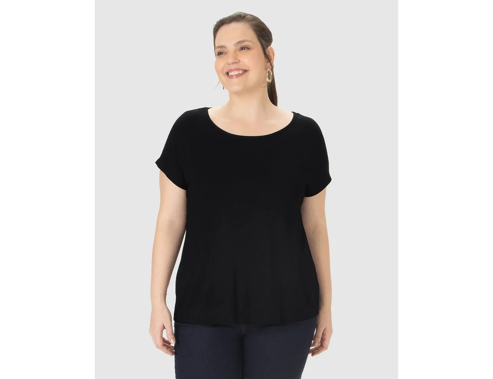 **Monte a sua grade. Produtos originais Malwee de alta qualidade para revenda.** A Blusa Básica Feminina Plus Size com Manga Japonesa em Viscose Stretch oferece caimento leve e elegante. O tecido com elasticidade garante conforto e um ajuste perfeito, sendo uma peça essencial e versátil para o guarda-roupa de verão das suas clientes.