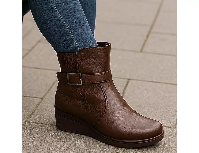Bota Feminina Salto Anabela Com Fivela Mooncity 71105 Marrom - Atacado
