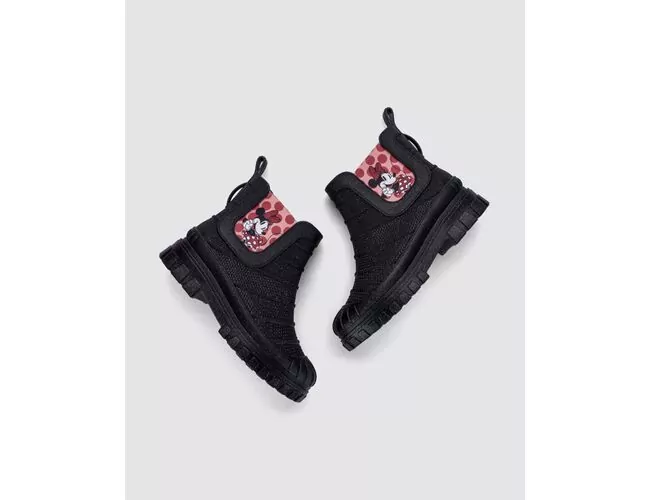 Divertidamente ilustrada, nossa clássica Chelsea Boot tem como propósito um resgate do lúdico para o modelo. Sucesso em 2023 com os lançamentos de Barbie e Wandinha, quando possuía um tom de voz mais ''modinha'', a diferença está explicita através da composição gráfica, onde colocamos dessa vez mais cores, elemento e as poses dos personagens em primeiro plano. Para a versão de Minnie, a linguagem é romântica e clássica. No Stitch, suas orelhas baixas nos comove pela fofura causada no gestual e, as versões de Divertida Mente exemplificam o potencial de cada uma das emoções escolhidas, tanto em suas poses como nos elementos adicionais que ajudam a contar a história (o sol para alegria, as linhas tremidas para a ansiedade e a cara característica da Nojinho).