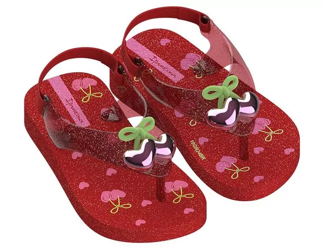Os laços e corações invadiram a Ipanema Belle. Com Aplicação em desaque na tira o laço aparece em duas versões, translúcido com aplicação de glitter e opção bicolor. Ambos contam com aplique de coração metalizado como acabamento. Atributos: Duas opções de acabamento no laço: translúcida com glitter e bicolor. Aplique de coração metalizado.