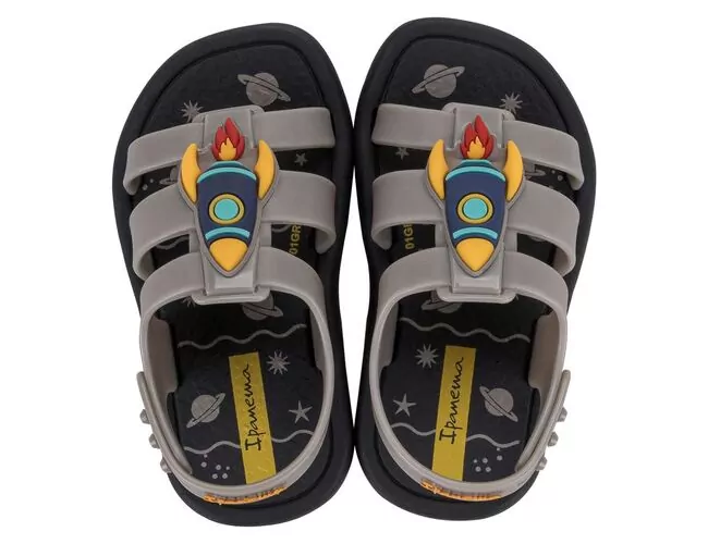 Ipanema Dreamy Baby em duas versões. A primeira traz a temática do verão refrescante, com um aplique de sorvete com detalhes de confetes e até cerejinha. As tiras nessa versão contam com acabamento translúcido perolado. Para a segunda versão o fundo do mar é o protagonista e traz um aplique de um polvo super simpático em seu barquinho. Propostas lúdicas e comerciais.