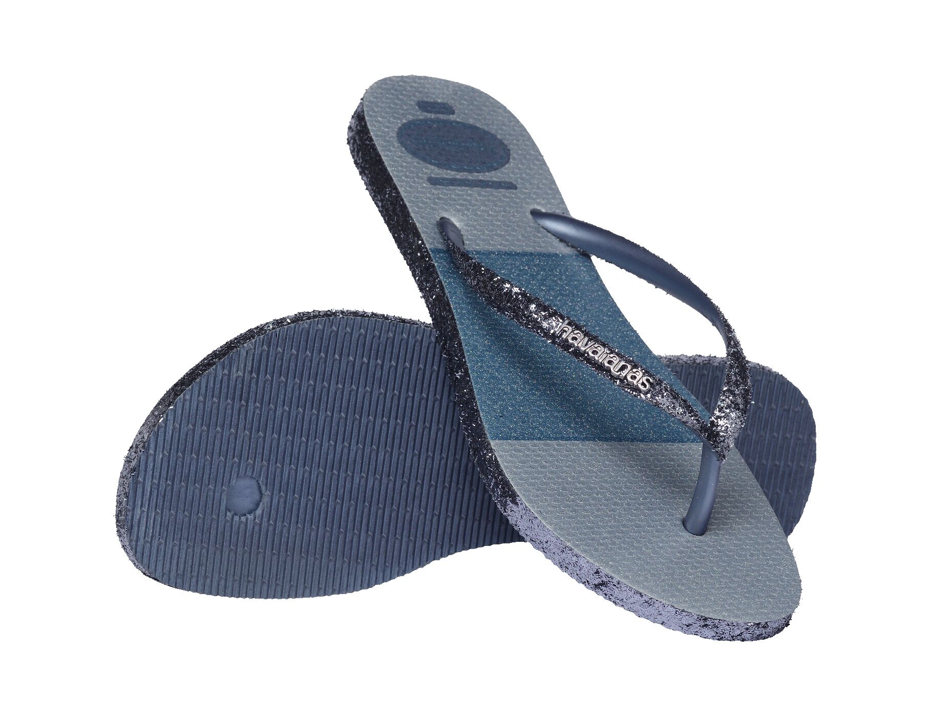 A Havaianas Slim Glitter Glam chega à Coleção 2025/26 trazendo o brilho que as consumidoras adoram com o conforto inconfundível da marca. Com tiras finas e acabamento em glitter, o modelo é elegante e moderno, ideal para quem busca estilo até nos momentos de lazer. O solado macio em borracha 100% Havaianas garante durabilidade, leveza e aderência, valorizando o produto no ponto de venda.