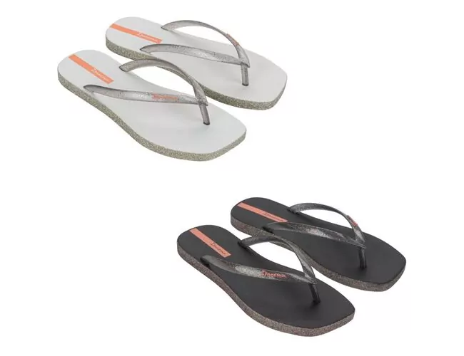 O bico quadrado, já consagrado no mercado feminino, não mostra sinais de desaceleração, se mantendo como diferencial no ponto de venda. Na Ipanema Edge Maxi Glow o glitter completa a entrega, com aplicação em toda a lateral da sola e nas tiras, que com o efeito translúcido entrega muito apelo comercial.