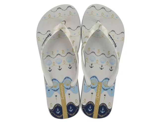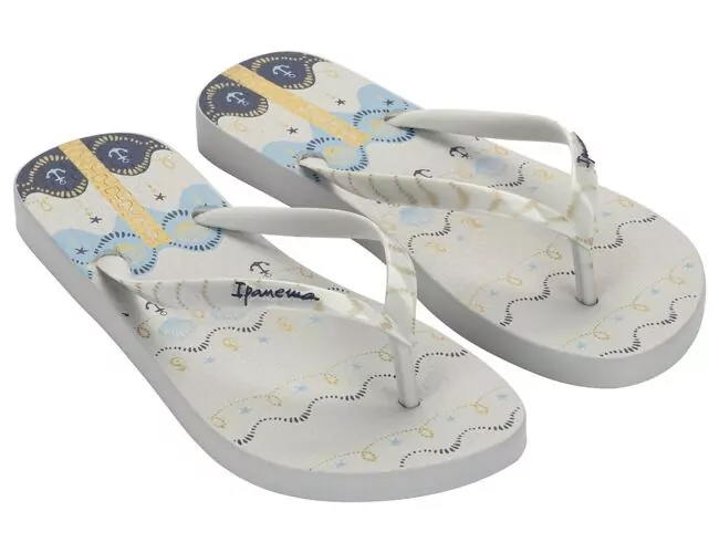 O tema náutico é atualizado na Ipanema Navy com linguagem delicada. Em duas versões os elementos do tema se mesclam criando propostas perenes e com apelo comercial. Alguns detalhes da grafia aparecem metalizados, trazendo ainda mais valor ao produto. As tiras são delicadas e polidas. Uma das versões conta com tira metalizada.
