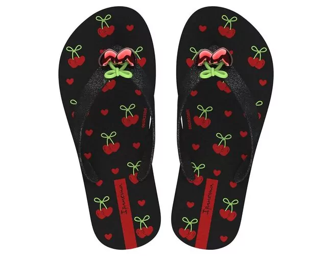 A Ipanema Nova Belle adiciona delicadeza e romantismo ao portfólio infantil. Com a cereja na grafia e no enfeite da tira, um elemento que é tendência! As tiras com efeito perolado conferem um toque suave, enquanto o enfeite metalizado traz um glamour especial ao modelo.