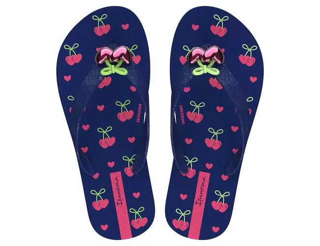 A Ipanema Nova Belle adiciona delicadeza e romantismo ao portfólio infantil. Com a cereja na grafia e no enfeite da tira, um elemento que é tendência! As tiras com efeito perolado conferem um toque suave, enquanto o enfeite metalizado traz um glamour especial ao modelo.