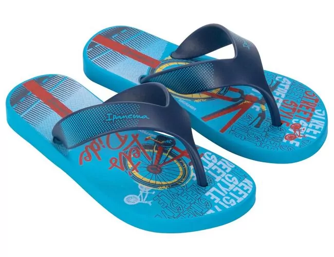 A Ipanema Deck City traz uma proposta de grafia mais adulta e divertida para os consumidores. Uma das versões no estilo college, com referências esportivas. A outra opção de grafia traz um estilo mais de rua, com elementos de surf skate. Possui também grafia nas tiras, que combina com a palmilha.