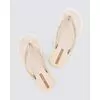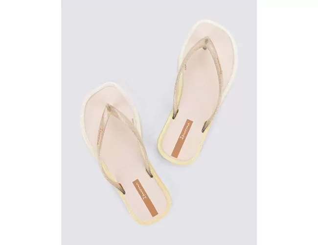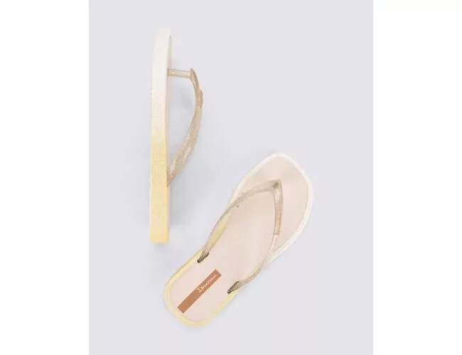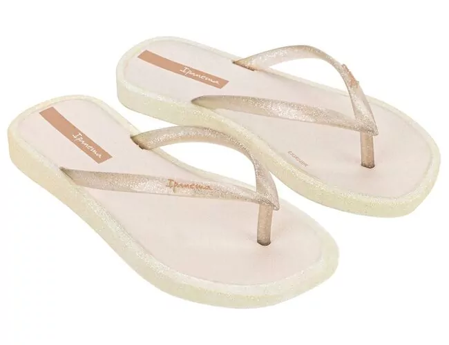 O bico quadrado, já consagrado no mercado, não mostra sinais de desaceleração, se mantendo como diferencial no ponto de venda. Na Ipanema Edge Solar Glow o glitter completa a entrega, com aplicação em toda a lateral da sola e que sobe na lateral da palmilha, super novidade! As tiras, contam com efeito translúcido e injeção de glitter.