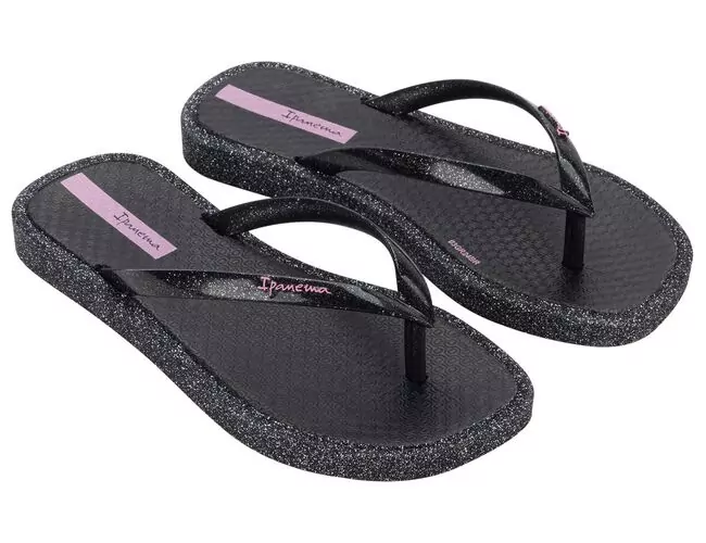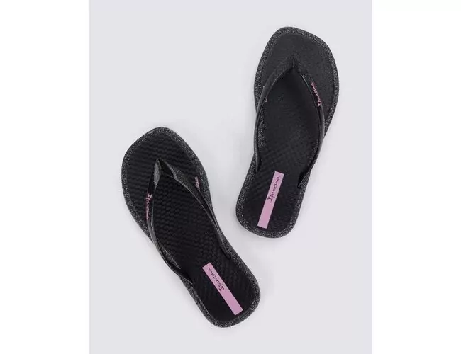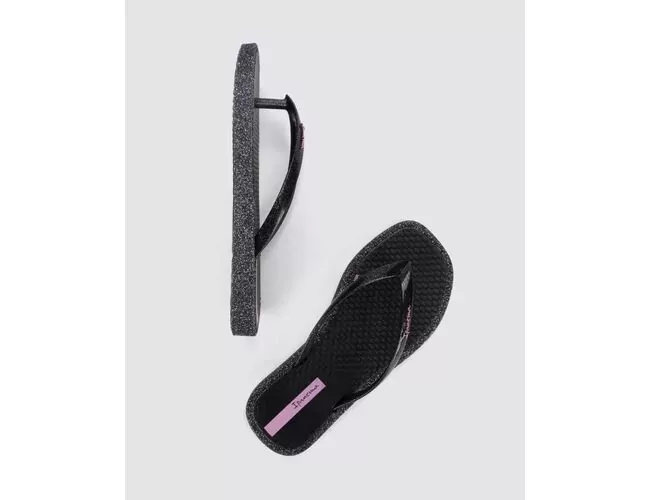 O bico quadrado, já consagrado no mercado, não mostra sinais de desaceleração, se mantendo como diferencial no ponto de venda. Na Ipanema Edge Solar Glow o glitter completa a entrega, com aplicação em toda a lateral da sola e que sobe na lateral da palmilha, super novidade! As tiras, contam com efeito translúcido e injeção de glitter.