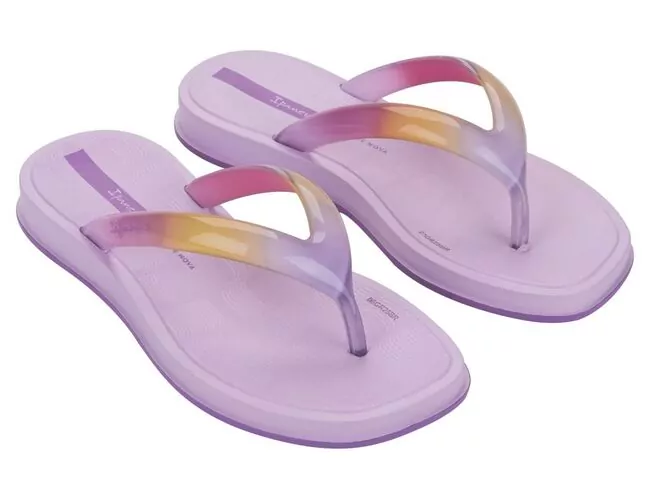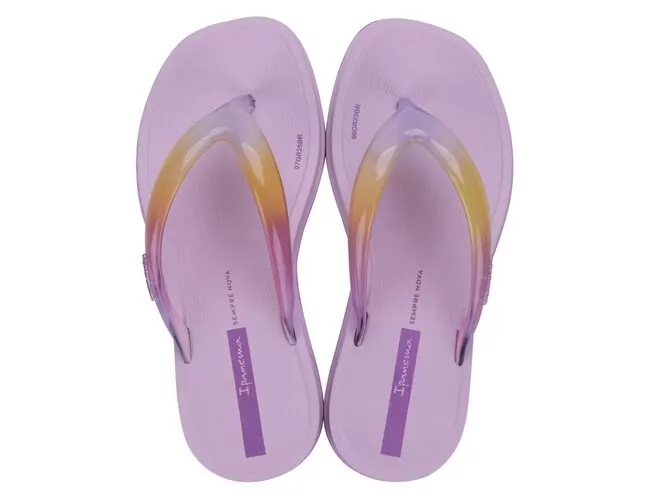Traz nas tiras uma proposta mais divertida e colorida, em um gradiente de cores contrastantes. Também traz pontos de cor na palmilha e na soleta. A sola quadrada e a altura de salto maior são detalhes em alta na moda! O salto maior deixa a sola mais macia na região do calcanhar e proporcionando mais ergonomia e conforto no caminhar. Na palmilha das solas, uma textura inspirada na calçada da Ipanema e nas ondas do mar, de uma forma geométrica e padronizada.