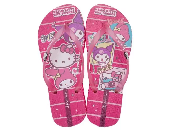 Um mundo de fofura e diversão nos pés das crianças! O Chinelo Infantil Ipanema Hello Kitty And Friends traz as personagens mais queridas em um design encantador, cheio de cores e alegria. Com tiras confortáveis, palmilha macia e solado flexível, garante conforto e segurança para o dia a dia. Ideal para acompanhar os pequenos em momentos de lazer com muito estilo, leveza e o charme inconfundível da Hello Kitty!