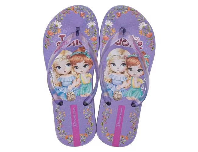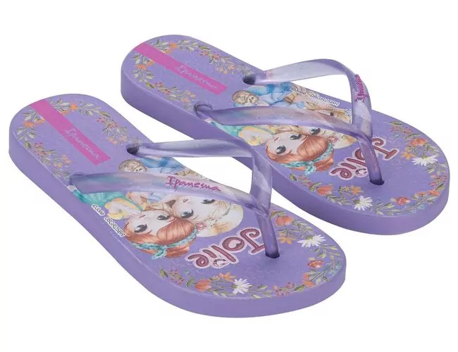 As Meninas mais fofas estampando a Ipanema Jolie Amores, são três personagens da licença Jolie e seus bichinhos de estimação favoritos, em meio a um cenário delicado com inspiração na natureza e as trocas de estação do ano. Para complementar, a tira vem com acabamento perolado e glitter para dar um toque de magia que complementa a estampa da palmilha.