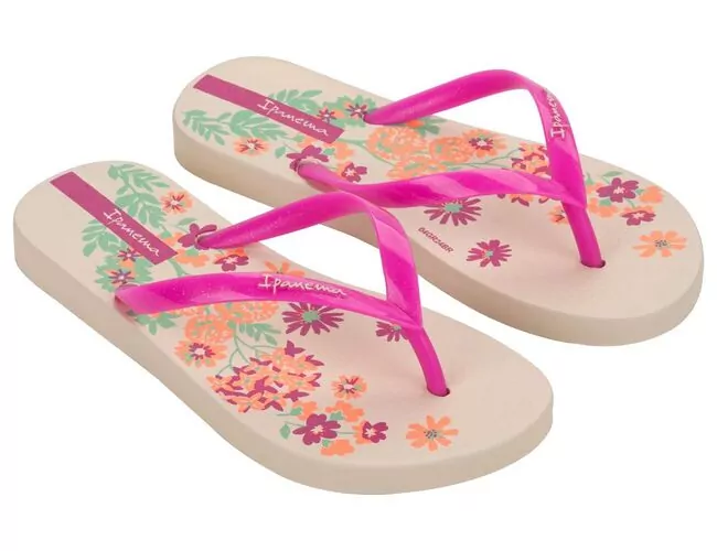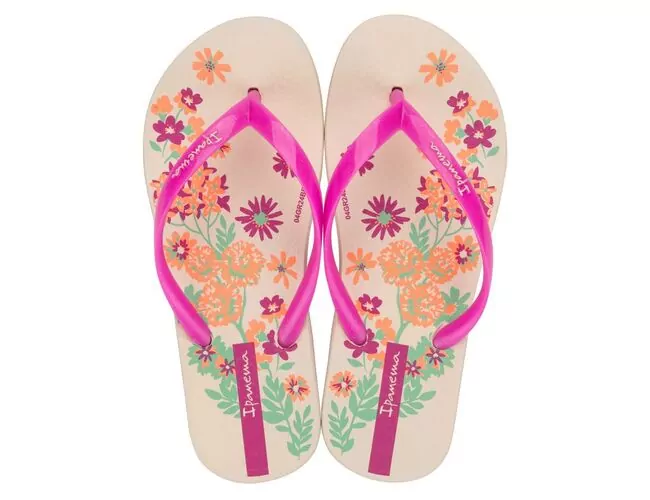 Flores e folhagens estampam a palmilha da Ipanema Oasis. Reconhecidas pelas consumidoras essa linguagem é aposta certo. As tiras contam aplicação metalizada. Atributos: Opção de versão com tiras metalizadas
