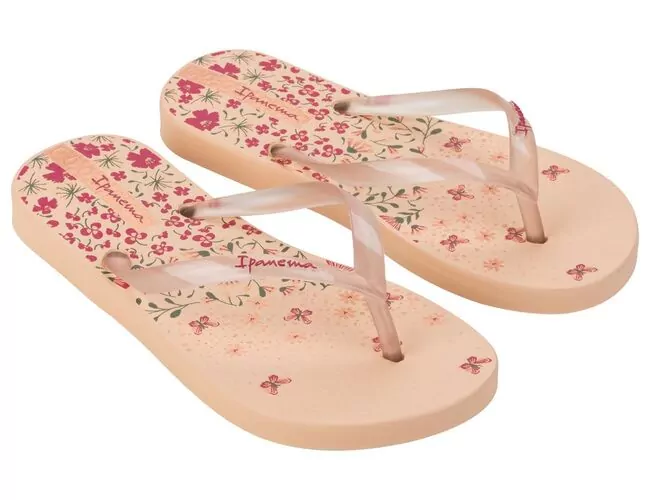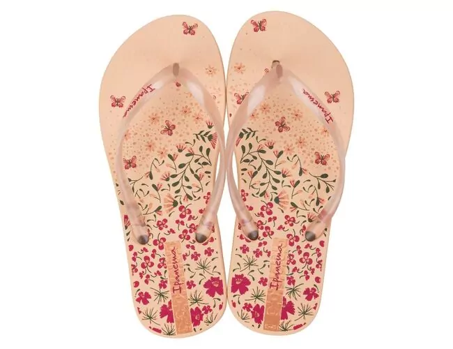 Flores e folhagens estampam a palmilha da Ipanema Oasis. Reconhecidas pelas consumidoras essa linguagem é aposta certo. As tiras contam aplicação metalizada. Atributos: Opção de versão com tiras metalizadas