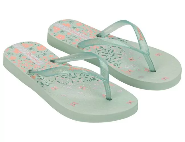 Flores e folhagens estampam a palmilha da Ipanema Oasis. Reconhecidas pelas consumidoras essa linguagem é aposta certo. As tiras contam aplicação metalizada. Atributos: Opção de versão com tiras metalizadas