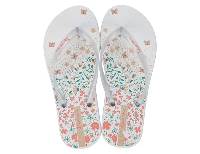 Flores e folhagens estampam a palmilha da Ipanema Oasis. Reconhecidas pelas consumidoras essa linguagem é aposta certo. As tiras contam aplicação metalizada. Atributos: Opção de versão com tiras metalizadas