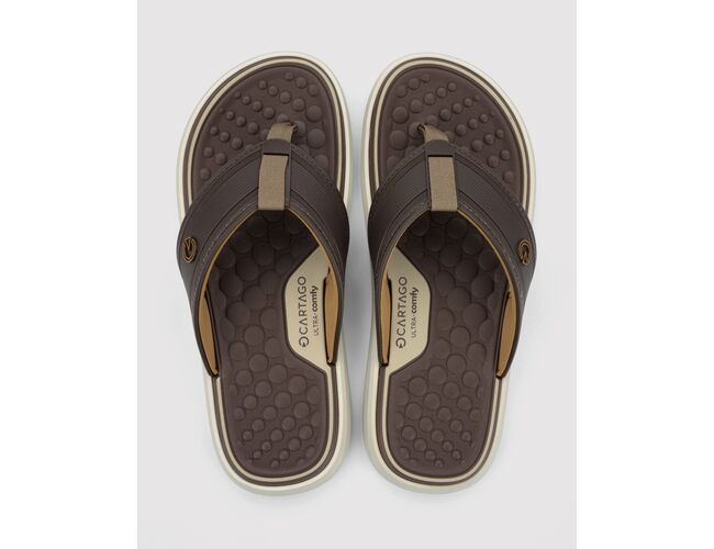 Modelo masculino da linha Cartago, desenvolvido com cabedal forrado em EVA e dedeira têxtil para maior conforto. Possui detalhes em textura e sobreposição que valorizam o design, além de palmilha anatômica com efeito massageador que proporciona bem-estar durante o uso. Solado resistente e de fácil limpeza. Produto versátil, com ótima aceitação no mercado e excelente giro para revenda.