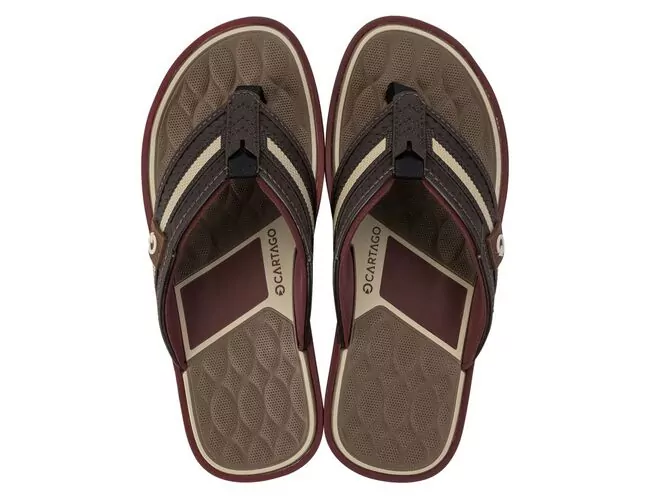 Design e cores elegantes para chamar atenção nas gondolas do PDV. O chinelo de dedo Cartago Lyon III tem uma palmilha com gomos de relevo que dá mais conforto ao calce, junto da dedeira têxtil, do cabedal e sola robustos. Além disso conta com um efeito de cores contrastantes e sobreposição, é moderno e estiloso para todos os dias.