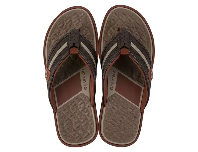 Design e cores elegantes para chamar atenção nas gondolas do PDV. O chinelo de dedo Cartago Lyon III tem uma palmilha com gomos de relevo que dá mais conforto ao calce, junto da dedeira têxtil, do cabedal e sola robustos. Além disso conta com um efeito de cores contrastantes e sobreposição, é moderno e estiloso para todos os dias.