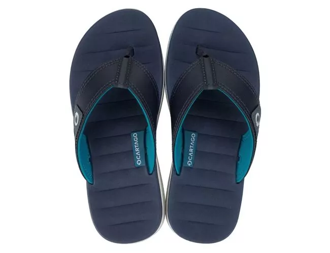Chinelo Cartago Malaga em material sintético de alta qualidade, ideal para dias de lazer e descontração. Apresenta tiras que se encaixam suavemente entre os dedos, proporcionando um ajuste confortável. Destaque para as elegantes etiquetas da marca e os meticulosos pespontos que agregam charme ao design. Sua palmilha em EVA macio foi projetada com ondulações para garantir um conforto excepcional a cada passo, tornando-o o companheiro perfeito para seus momentos de relaxamento.