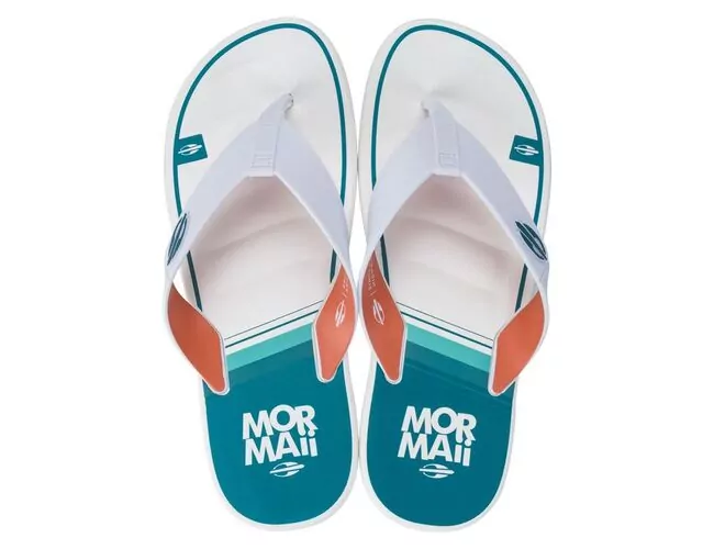 O Mormaii Tai Dedo Ad é um chinelo de dedo com forquilha texturizada, mimetizando uma construção têxtil com serigrafia interna. Sola de EVA com uma serigrafia clássica Mormaii no calcanhar, contemplando também uma estampa estilo carimbo remetendo a Garopaba. Possui gomos de conforto e sola tratorada. Um produto masculino de estilo casual, propício para o dia a dia na praia ou na cidade.