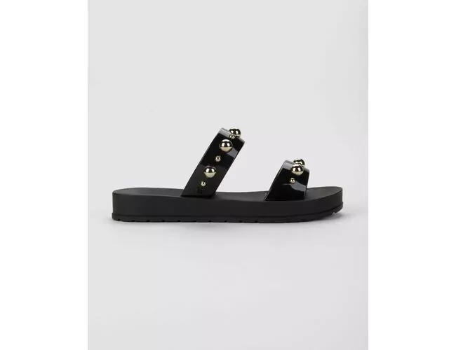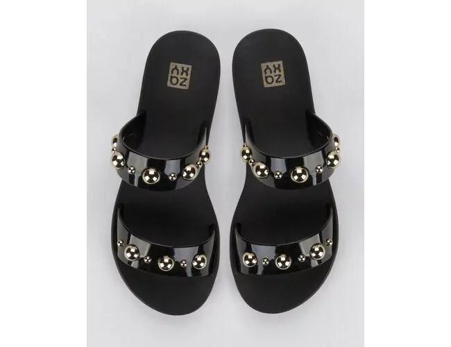 A Zaxy Rise encorpora a tendência Rebel através das calotas metalizadas! As tiras paralelas em acabamento glossy, dão um ar atemporal a esse slide anatômico, enquanto os studs em formato de calota aplicados no cabedal criam um toque de modernidade e ousadia!