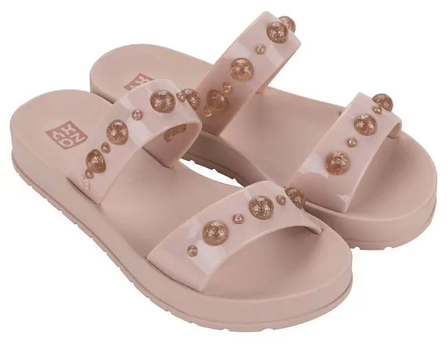A Zaxy Rise encorpora a tendência Rebel através das calotas metalizadas! As tiras paralelas em acabamento glossy, dão um ar atemporal a esse slide anatômico, enquanto os studs em formato de calota aplicados no cabedal criam um toque de modernidade e ousadia!