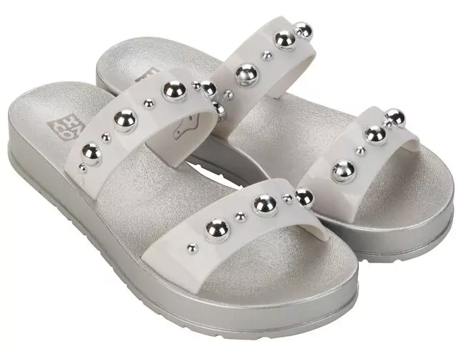 A Zaxy Rise encorpora a tendência Rebel através das calotas metalizadas! As tiras paralelas em acabamento glossy, dão um ar atemporal a esse slide anatômico, enquanto os studs em formato de calota aplicados no cabedal criam um toque de modernidade e ousadia!
