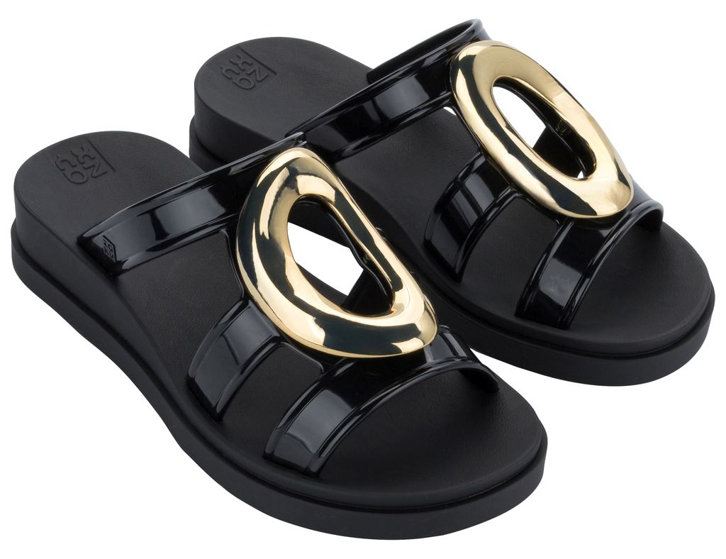 Aposta fresh e repleta de informação de moda, Zaxy Voice se destaca como peça-chave da temporada. O maxi elo com design orgânico rouba a cena e reforça a valorização dos enfeites metalizados. As três tiras finas trazem um ar elegante, enquanto a sola levemente anabelada adiciona conforto e reforça o shape versátil. Um modelo que traduz o desejo por praticidade com estilo, em sintonia com a busca por acessórios statement de impacto sutil.