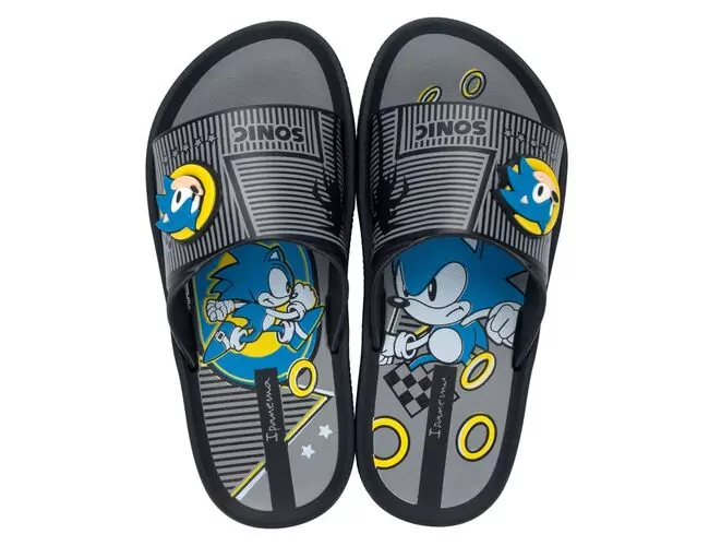 O Sonic Slide tem o personagem se destacando na sola e no cabedal. O visual do produto traz um contraste super divertido e a estampa transmite velocidade e ação. O Sonic é destaque no enfeite do cabedal, trazendo ainda mais energia e personalidade.