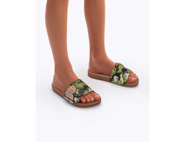 Explorando diferentes estilos, trazemos duas versões de chinelo para os pequenos amantes de Jurassic Park: o camuflado aventureiro e o neon do cyberpunk. Na primeira versão, o camuflado dá personalidade ao calçado, criando uma estética aventureira. A segunda versão, traz uma estética inspirada no raio-X e nos fósseis dos dinossauros com uma arte neon.