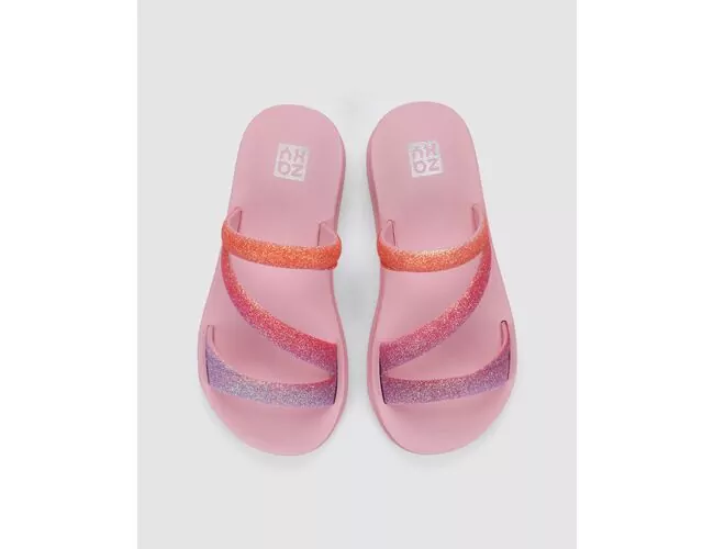 O sucesso da Zaxy Glitter ganha nova versão para as pequenas ZaxyLovers brilharem muito! Esse slide de multi tiras fica ainda mais fashion com o glitter que enfeita todo o cabedal, tendência confirmada do momento!! A sola anatômica garante estilo e conforto para todas as ocasiões!