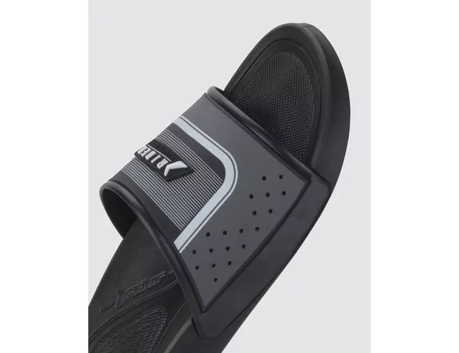 O Smash Slide continua explorando as linhas e composições geométricas nessa nova versão, mas agora com ainda mais detalhamento, já que a gáspea combina serigrafia com sobreposição em PVC, ganhando como acabamento uma etiqueta em plastisol. Na palmilha, a bolacha de conforto no calcanhar traz texturas de perfuros, que aumentam a sensação de conforto e maciez, afirmando o Smash como um slide básico, mas cheio de estilo, perfeito para todos os momentos.