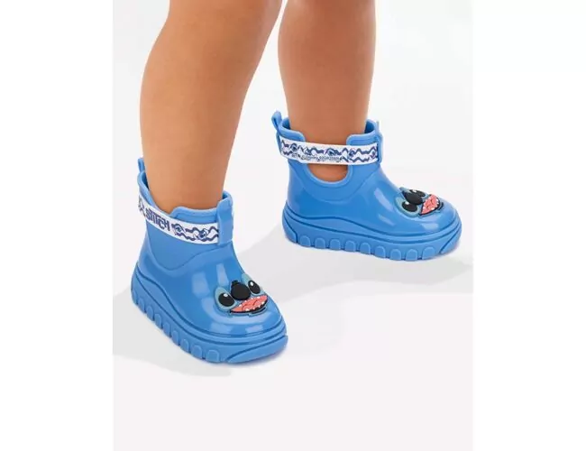 Que criança nunca imaginou vestir o personagem, não é mesmo? Seguido o sucesso do produto Disney Queridos chinelo de gáspea baby, a proposta para nova bota de baby de Disney, apresenta toda a ludicidade de vestir o personagem, através de um enfeite em plastisol com o rosto dos personagens Mickey, Minnie, Pooh e o queridinho da vez Stitch. Para a tira de fechamento da botinha, uma tira de coverline com impressão digital, que explora várias poses e expressões dos personagens.
