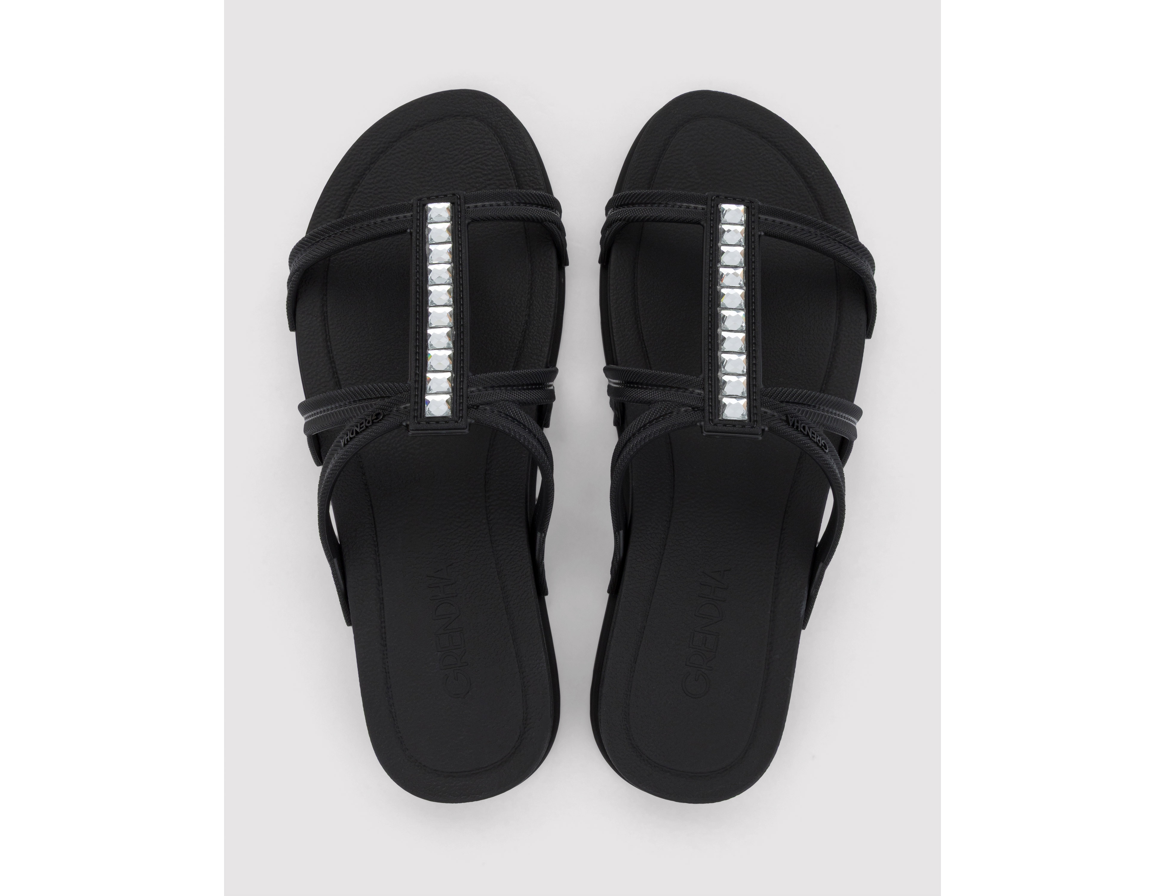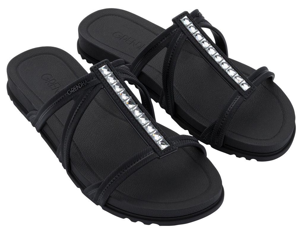 | Diferencial de Venda | **Detalhe de Cristais/Strass** (Brilho discreto, apelo sofisticado); **Leveza e Delicadeza** (Tiras finas, design que valoriza o pé); Marca Grendha (Reconhecida por rasteiras de moda). |