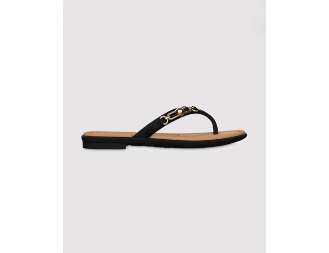 - **Detalhes Refinados:** Conta com texturas e apliques discretos nas tiras que agregam valor estético, permitindo o uso tanto em casa quanto no trabalho ou passeios.