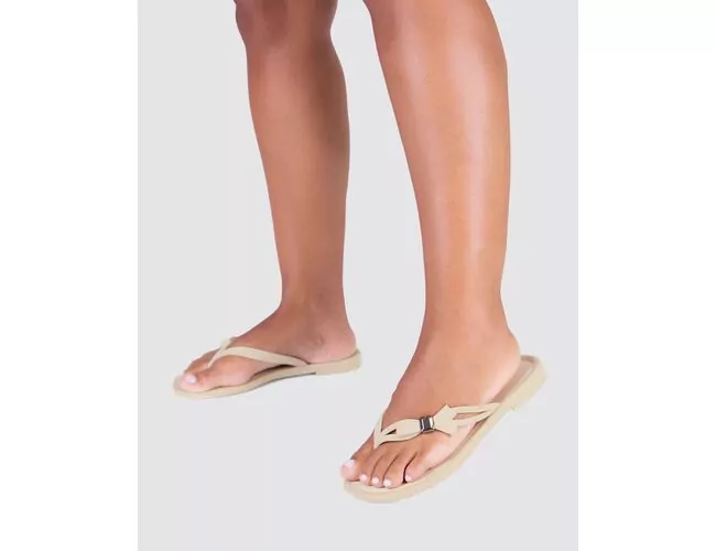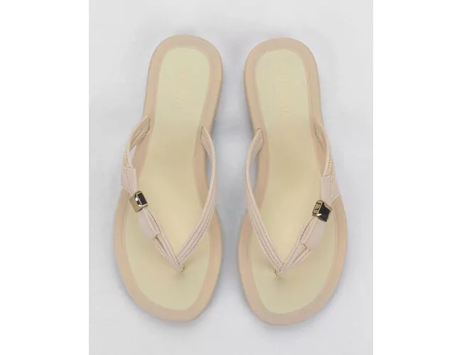 O laço vem ganhando protagonismo nas última coleções apresentadas, muito impulsionado pela tendência Ultra feminina que resgata elementos delicados de forma atualizada. O novo rasteiro de dedo para coleção Todo Dia, traz o elemento principal do laço na lateral com toque final do enfeite metálico. Para agregar novidade, a sola conta com opções bicolores na cartela.