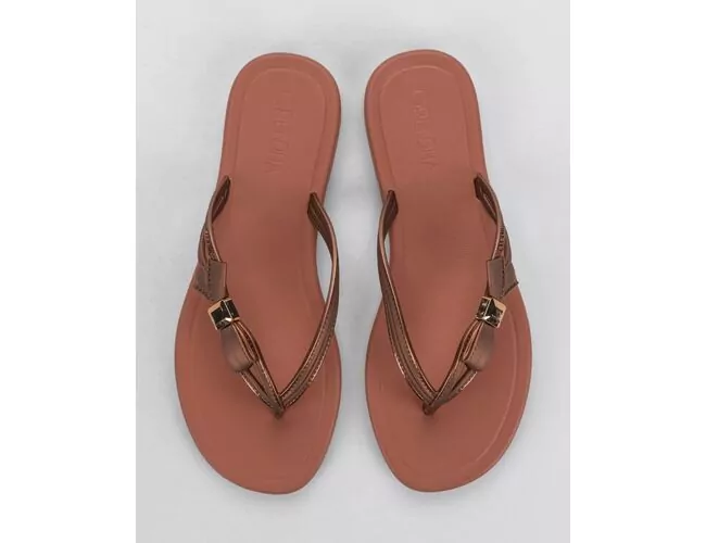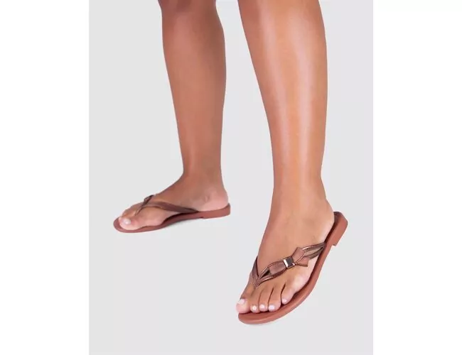 O laço vem ganhando protagonismo nas última coleções apresentadas, muito impulsionado pela tendência Ultra feminina que resgata elementos delicados de forma atualizada. O novo rasteiro de dedo para coleção Todo Dia, traz o elemento principal do laço na lateral com toque final do enfeite metálico. Para agregar novidade, a sola conta com opções bicolores na cartela.