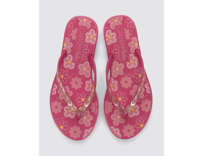 A Grendha Bela traz todo o encanto do modelo adulto em uma versão delicada e cheia de estilo para as pequenas. Suas tiras recebem acabamentos metalizados, que adicionam brilho na medida certa e reforçam a sofisticação do design. A cartela apresenta duas opções de grafias inspiradas na tendência Jardim das Fantasias, onde flores suaves se misturam a elementos lúdicos, criando um visual mágico que desperta a imaginação e transporta para o mundo dos sonhos. Um modelo encantador, perfeito para momentos especiais e cheio de delicadeza no dia a dia.