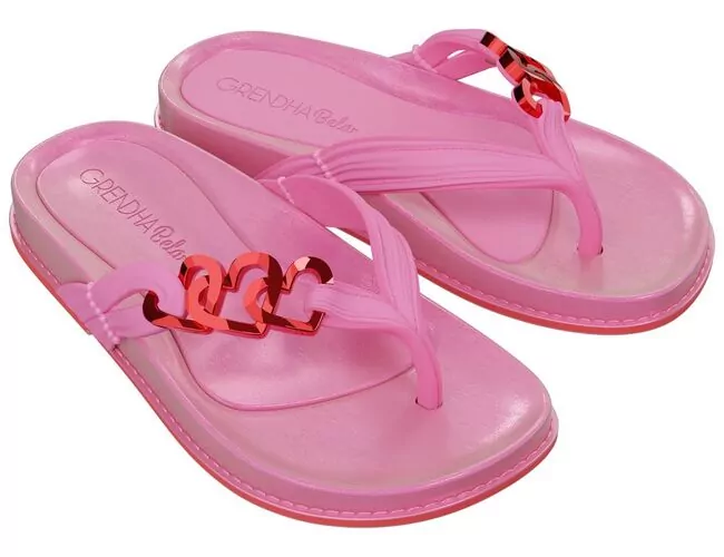 Com design inspirado no Romance Açucarado tendência para o universo infantil de Bela a nova rasteira une estilo e conforto em cada detalhe. O destaque fica por conta do aplique em forma de coração, que traduz a tendência das correntes com um toque romântico. A joia metalizada, posicionada na lateral do pé, agrega valor ao modelo. A sola anatômica Abraçar já consagrada na linha Grendha Bela finaliza o visual com conforto e um design acolhedor.