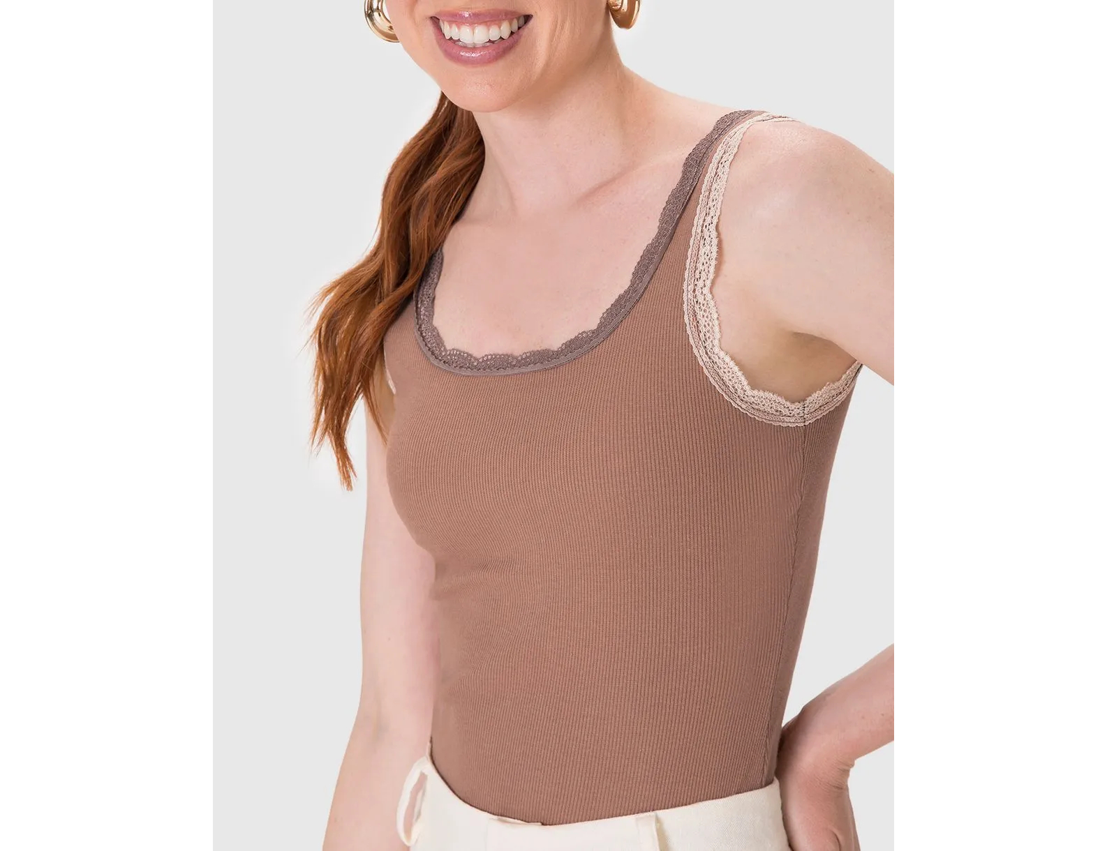 Regata Básica Malwee Feminina Detalhe Costura Renda Em Ribana 1000131765 - Atacado