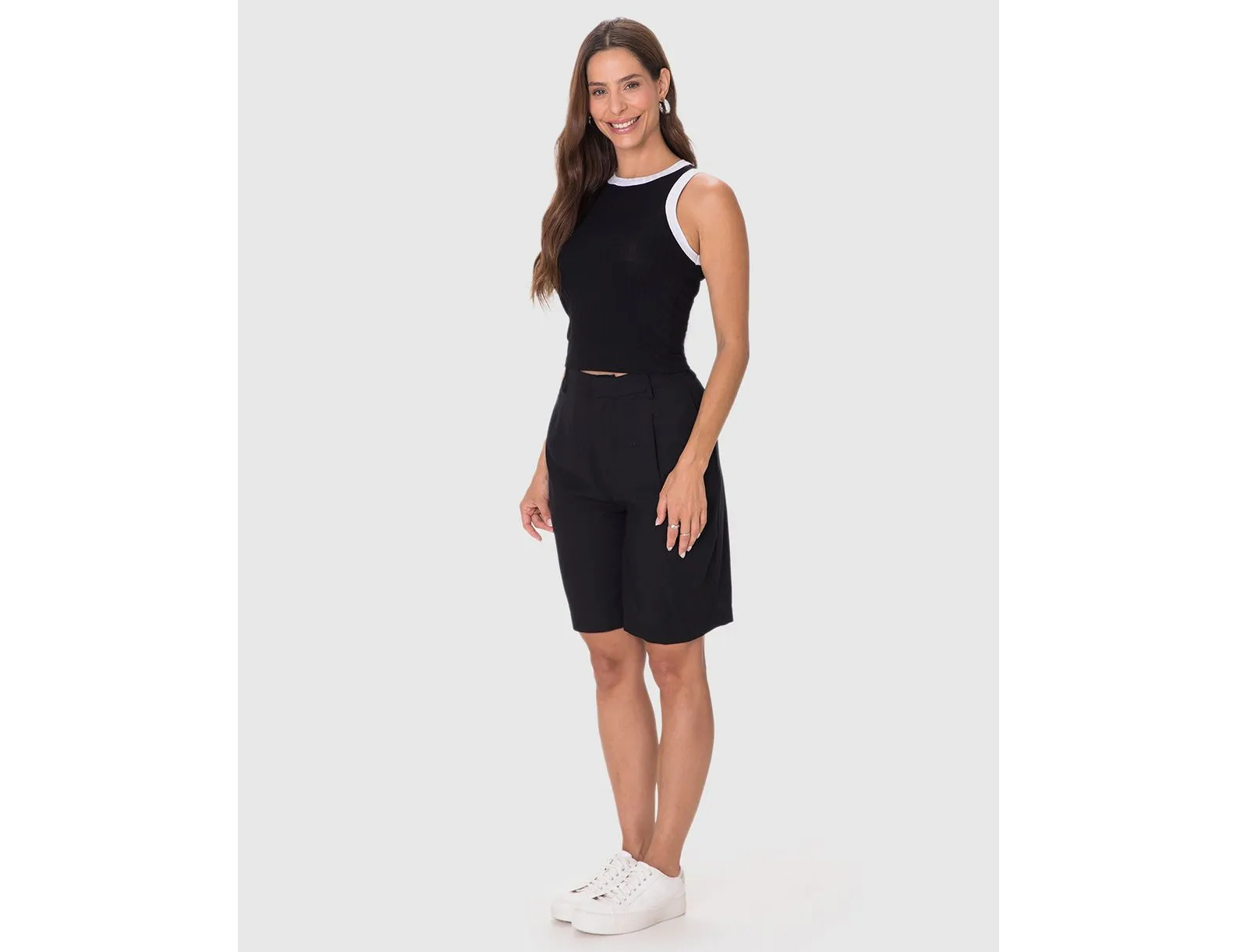 Regata Básica Malwee Feminina Long Cropped Em Malha Canelada De Viscose 1000113554 - Atacado