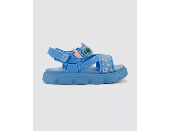 Modelo infantil com personagens Disney, incluindo Mickey, Minnie, Stitch e McQueen. Cabedal com tiras em materiais têxteis de alta qualidade, com sobreposições, pontos de costura e detalhes em plastisol que valorizam o design. Solado macio, já consolidado na linha Grendene Kids, garante conforto e segurança no uso diário. Produto versátil, com forte apelo visual e excelente giro para revenda no segmento infantil.