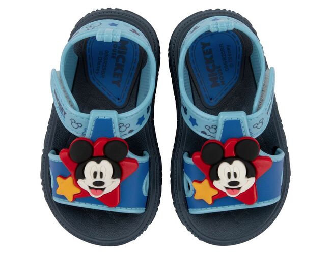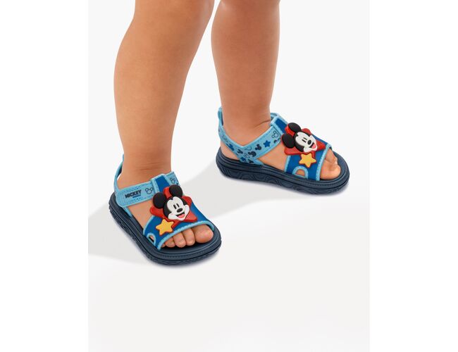 Segura, confortável e rica em possibilidades. A nova sandália de Disney apresenta como atributo não apenas seu cabedal com regulagem prática em velcro no peito do pé (o que expande a gama de usuários) e sua superfície com possibilidades amplas de personalização, mas também o enfeite, protagonista da vez. Nos apropriamos do conceito interativo com apelo sensorial, perene dentro do segmento infantil, através de um coverline que fica solto em regiões específicas dadas suas versões, no intuito de estabelecer uma conexão do calçado acompanhado de uma brincadeira. Entre eles, destaca-se: As mãos do Mickey; laço e braços da Minnie; orelhas do Stitch e a juba interpretada com folhas em volta do Simba na versão de Rei Leão.