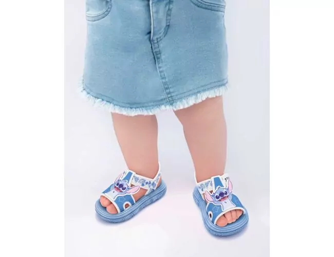 Segura, confortável e rica em possibilidades. A nova sandália de Disney apresenta como atributo não apenas seu cabedal com regulagem prática em velcro no peito do pé (o que expande a gama de usuários) e sua superfície com possibilidades amplas de personalização, mas também o enfeite, protagonista da vez. Nos apropriamos do conceito interativo com apelo sensorial, perene dentro do segmento infantil, através de um coverline que fica solto em regiões específicas dadas suas versões, no intuito de estabelecer uma conexão do calçado acompanhado de uma brincadeira. Entre eles, destaca-se: As mãos do Mickey; laço e braços da Minnie; orelhas do Stitch e a juba interpretada com folhas em volta do Simba na versão de Rei Leão.