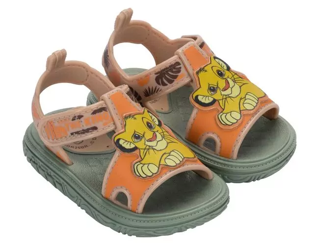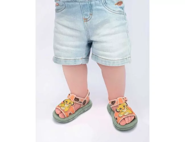 Segura, confortável e rica em possibilidades. A nova sandália de Disney apresenta como atributo não apenas seu cabedal com regulagem prática em velcro no peito do pé (o que expande a gama de usuários) e sua superfície com possibilidades amplas de personalização, mas também o enfeite, protagonista da vez. Nos apropriamos do conceito interativo com apelo sensorial, perene dentro do segmento infantil, através de um coverline que fica solto em regiões específicas dadas suas versões, no intuito de estabelecer uma conexão do calçado acompanhado de uma brincadeira. Entre eles, destaca-se: As mãos do Mickey; laço e braços da Minnie; orelhas do Stitch e a juba interpretada com folhas em volta do Simba na versão de Rei Leão.