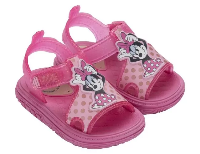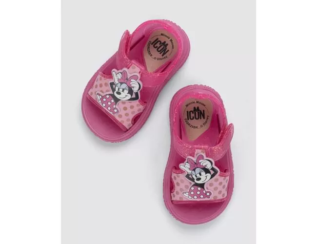 Segura, confortável e rica em possibilidades. A nova sandália de Disney apresenta como atributo não apenas seu cabedal com regulagem prática em velcro no peito do pé (o que expande a gama de usuários) e sua superfície com possibilidades amplas de personalização, mas também o enfeite, protagonista da vez. Nos apropriamos do conceito interativo com apelo sensorial, perene dentro do segmento infantil, através de um coverline que fica solto em regiões específicas dadas suas versões, no intuito de estabelecer uma conexão do calçado acompanhado de uma brincadeira. Entre eles, destaca-se: As mãos do Mickey; laço e braços da Minnie; orelhas do Stitch e a juba interpretada com folhas em volta do Simba na versão de Rei Leão.
