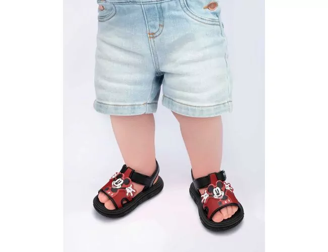 Segura, confortável e rica em possibilidades. A nova sandália de Disney apresenta como atributo não apenas seu cabedal com regulagem prática em velcro no peito do pé (o que expande a gama de usuários) e sua superfície com possibilidades amplas de personalização, mas também o enfeite, protagonista da vez. Nos apropriamos do conceito interativo com apelo sensorial, perene dentro do segmento infantil, através de um coverline que fica solto em regiões específicas dadas suas versões, no intuito de estabelecer uma conexão do calçado acompanhado de uma brincadeira. Entre eles, destaca-se: As mãos do Mickey; laço e braços da Minnie; orelhas do Stitch e a juba interpretada com folhas em volta do Simba na versão de Rei Leão.
